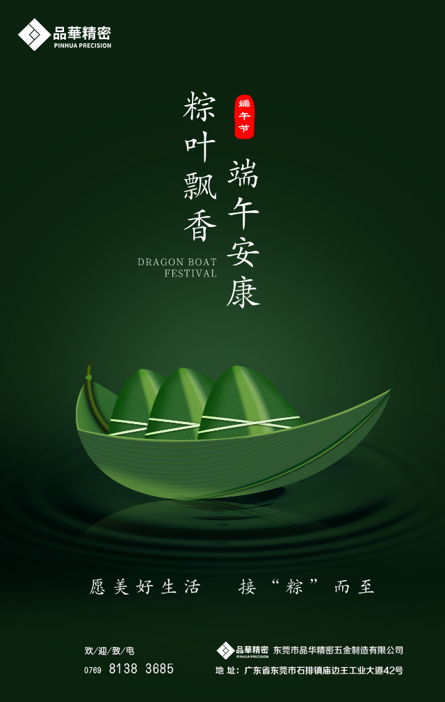 端午與春節、清明、中秋并稱為中國四大傳統節日,“端午節”這句話早期冒出于西晉的《風土記》: ”仲夏端午謂五月五日也,俗重此日也,與夏至同。”后因戰國時期的楚國詩人屈原在五月五日跳汨羅江自盡,人們亦將端午節作為紀念屈原的節日。在濃濃的粽香飄來之際,品華精密全體員工祝各位新老客戶的工作順利的,萬事如意,端午安康!